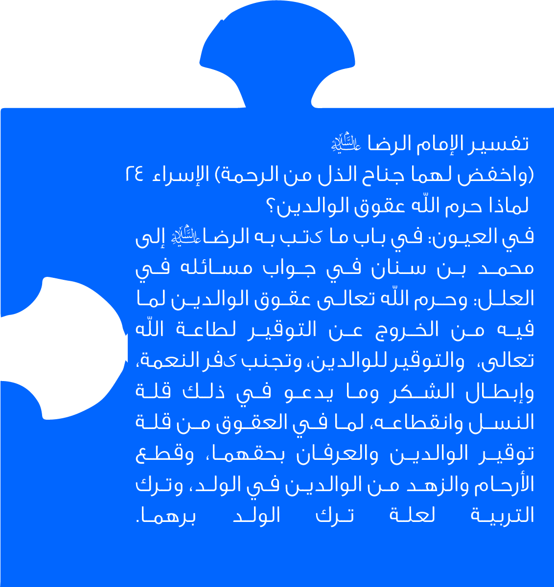 | لطائف رحمانية | تقوم القائدة بتوزيع بطاقات البازل الملونة التي تحتوي اللطائف على الأرهاط وعند الإنتهاء تعرض صورة البازل التي تحتوي على عنوان الورشة ( وبالوالدين إحساناً). | 10د | ||
