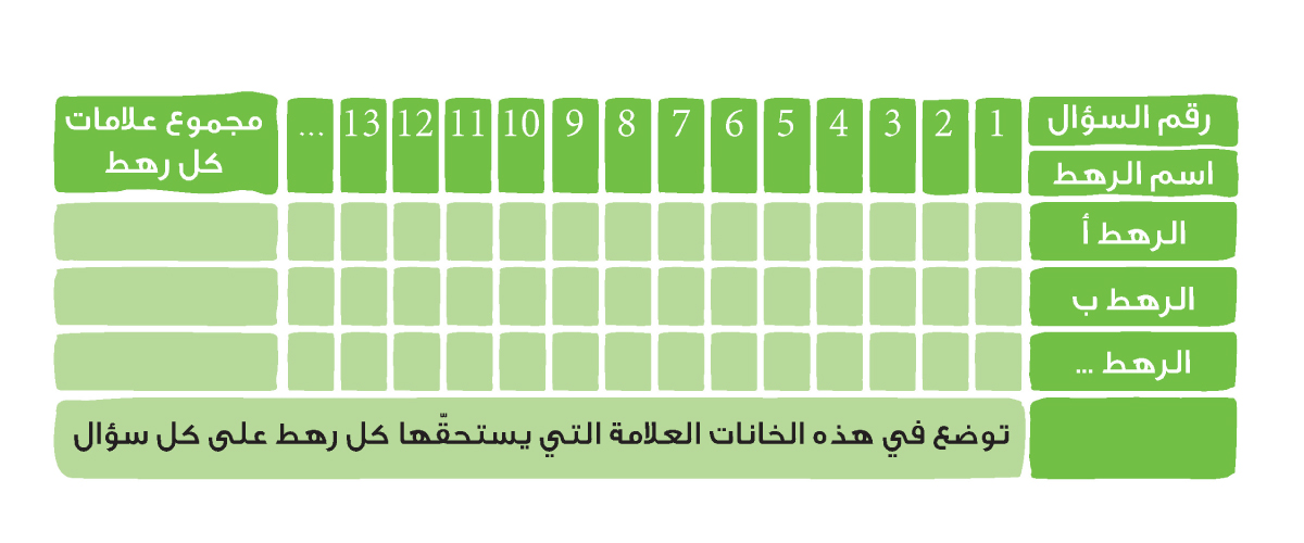 - تستمر الأرهاط في اختيار الأسئلة حتى لا يبقى أي سؤال (بشرط أن يكون كل رهط اختار نفس عدد الأسئلة).