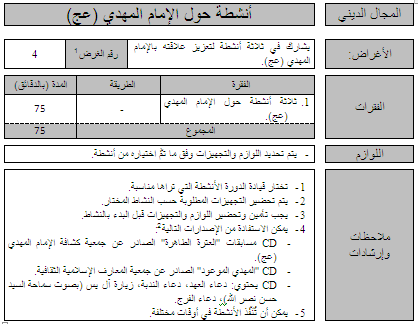 نضع بين أيديكم مجموعة من أفكار الأنشطة التي تتمحور حول الإمام المهدي (عجل الله تعالى فرجه) من ضمن إصدار دورات قادة الجماعات.