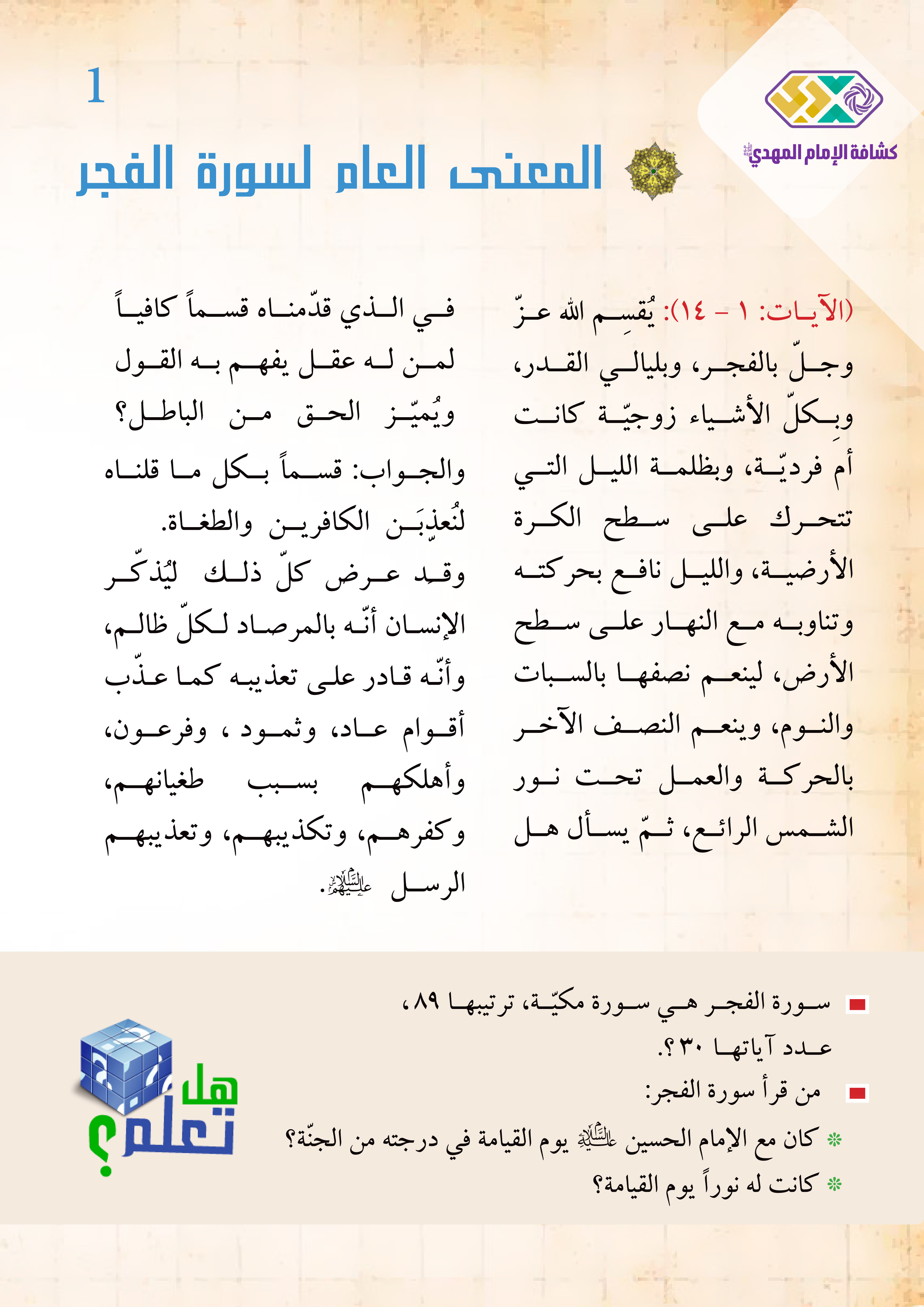 1. أتعرّف إلى المعنى العامّ لسورة الفجر.