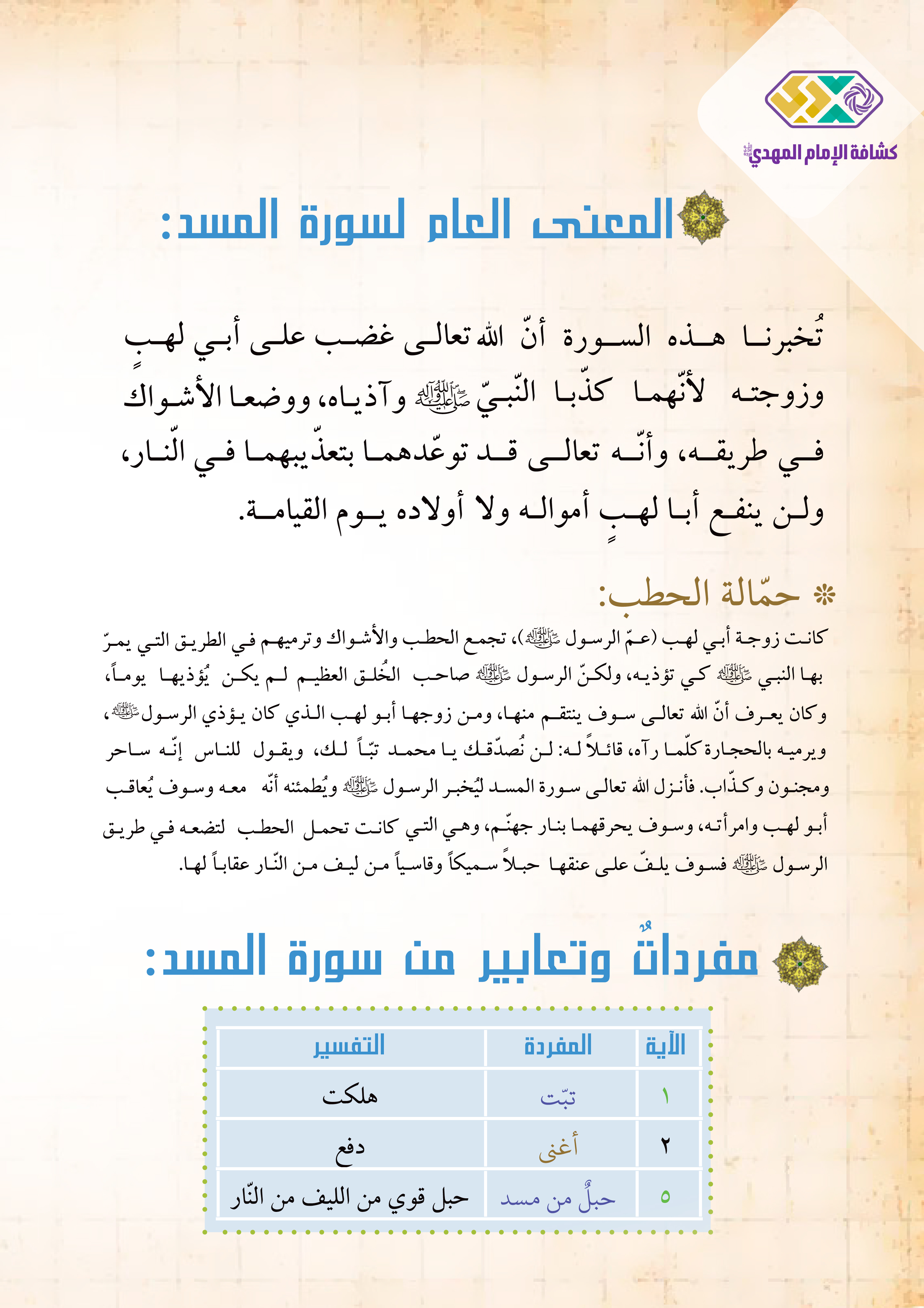 1. أتعرّف إلى المعنى العامّ لسورة المسد.